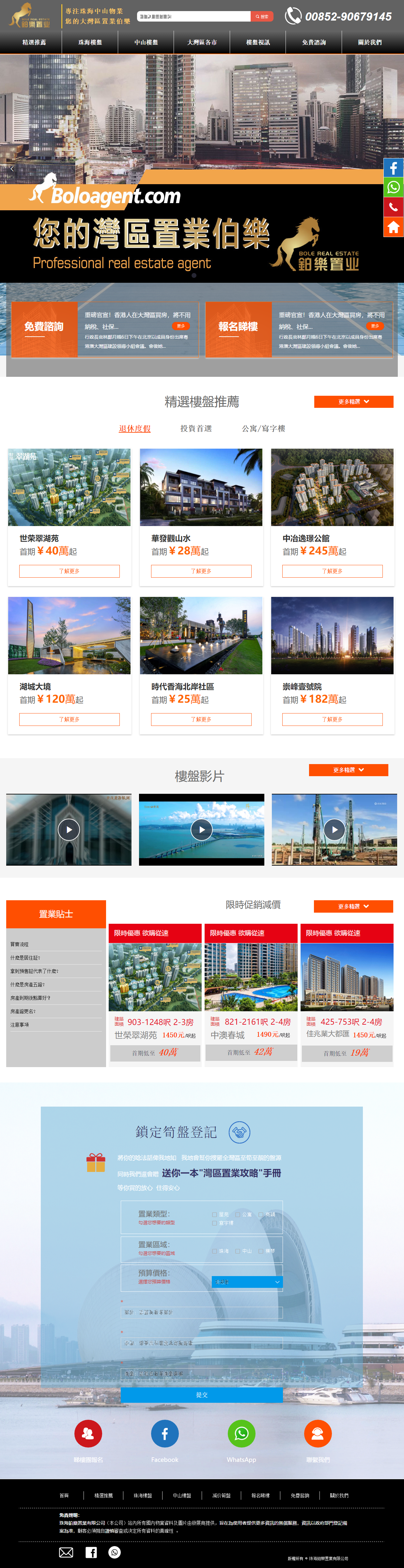 扎根于大灣區房地產市場,依託自身的行業經驗和專業能力對項目進行系統分析,在認真謹慎遴選之後,致力為港人提供優質的自住及投資地產項目其中包括:高級住宅,商業物業。此外,我們還為物業買家提供一體化售後服務,為客戶解決收樓、裝修、出租及房屋維修等各種痛點問題,保證您安心購房,無憂。