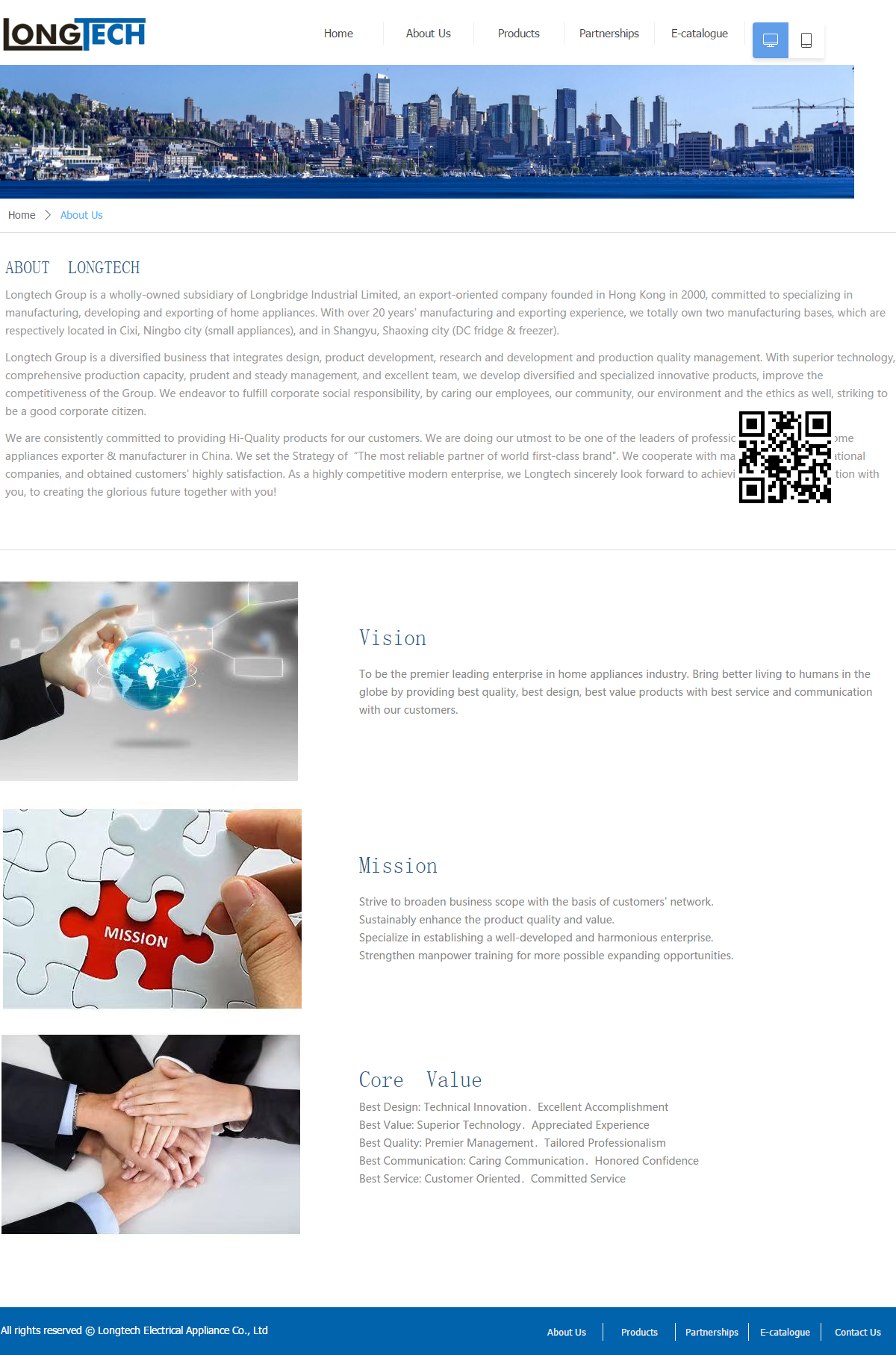 Longtech集团是长桥工业有限公司的全资子公司,是以出口为导向的公司2000年在香港创立,致力于专业生产,开发和出口家用电器。 拥有超过20年的生产和出口经验,我们完全拥有两个生产基地,分别位于慈溪,宁波市(小家电),在上虞,绍兴城市(直流冰箱和冷冻)。