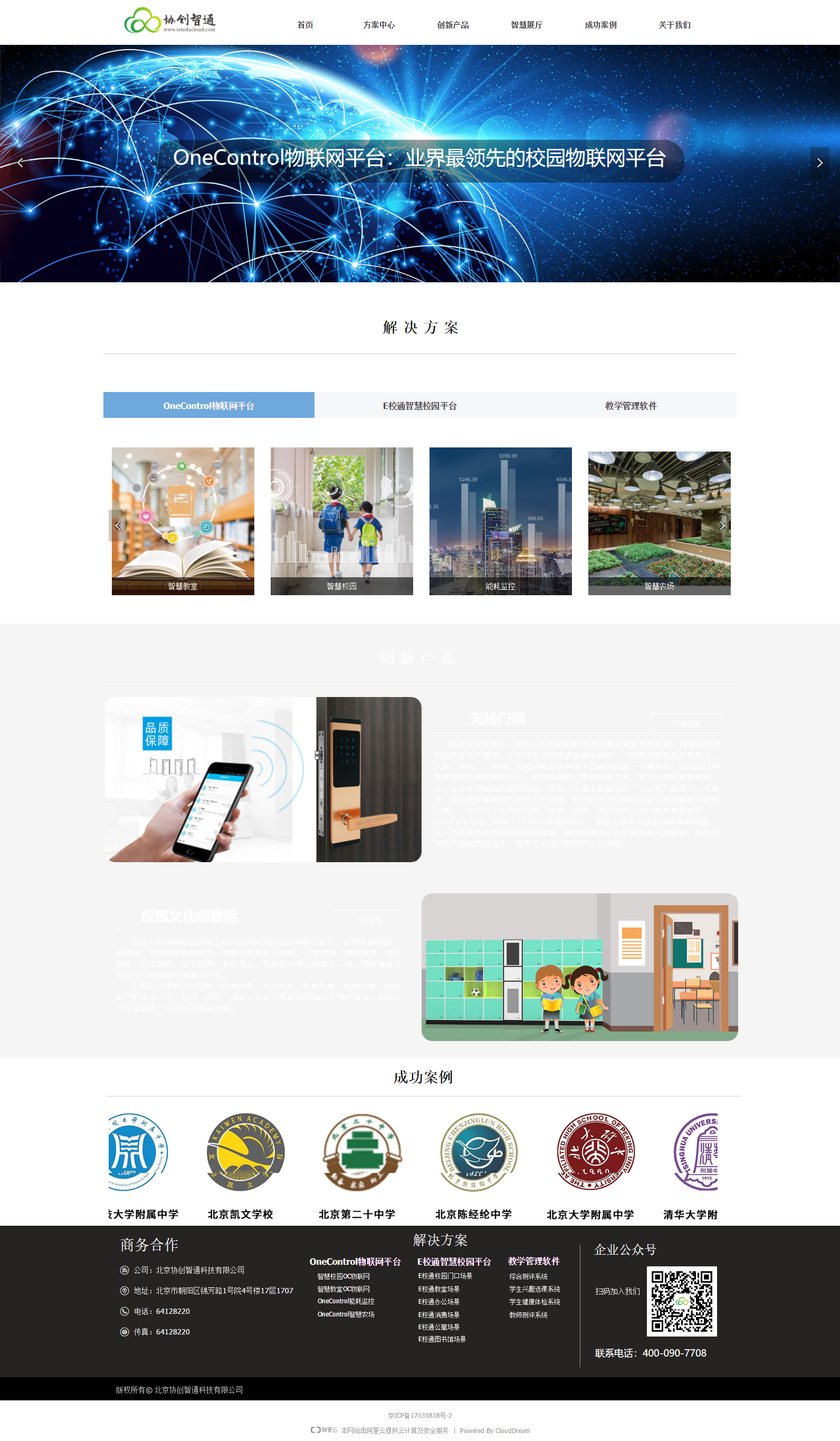 北京协创智通科技有限公司成立于2013年,是国内领先的智慧校园服务商,同时也是一家专注于实时监控系统及大数据应用服务的高科技企业。 公司自成立以来,自主研发e校通综合管理平台,融合了互联网、智能IC卡、人脸识别、电子码、移动端、物联网、智能安防等技术,拥有领先的数字化平台与物联网创新科技,推动了中小学数字化校园发展进程,为校园提供了多技术、多联接、多场景、多应用的智能化服务。