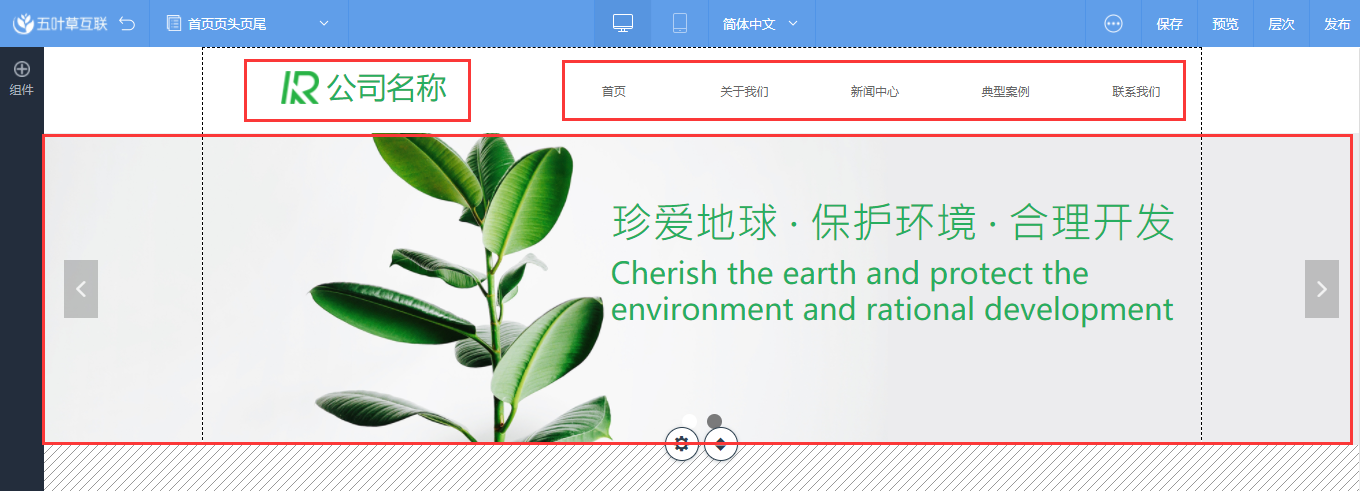 1、页头一般包括:图片(LOGO)、幻灯片(Banner图)、导航等控件