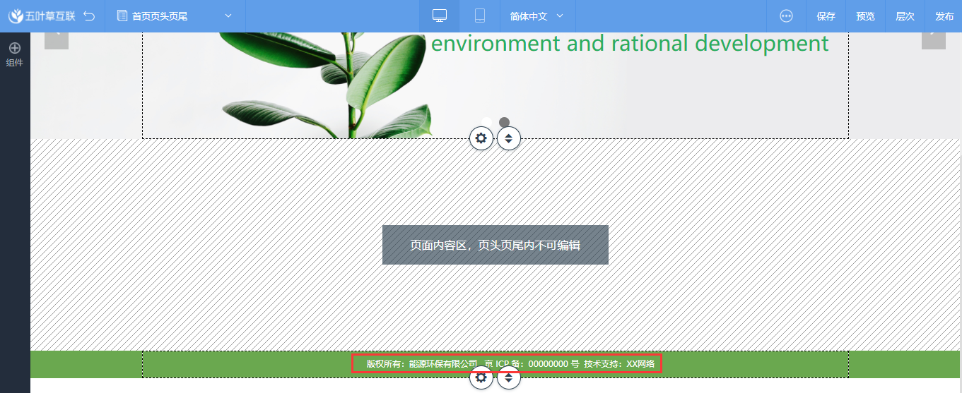 2、页尾一般展示公司的版权信息,主要为文字控件、友情链接等