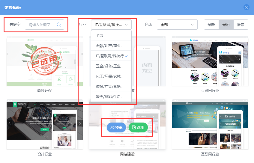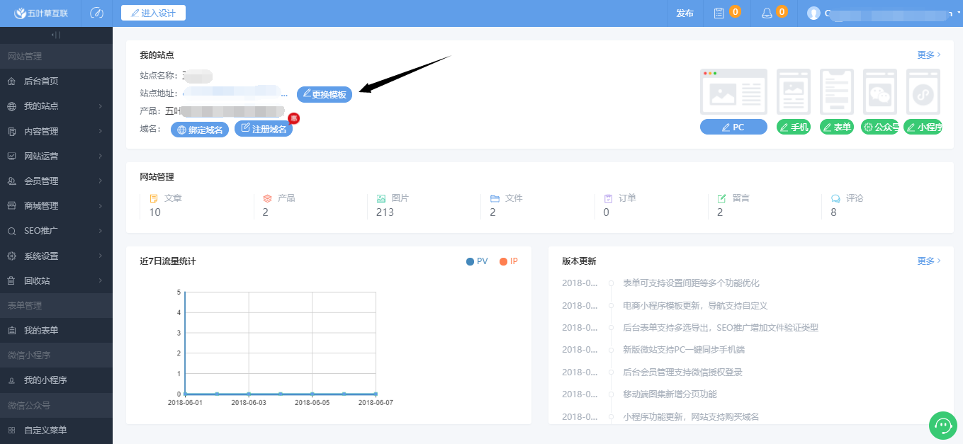 注:设计后台一次只能编辑一个模板,替换模板后,原模板设计数据会清空,更换模板前,请做好数据备份