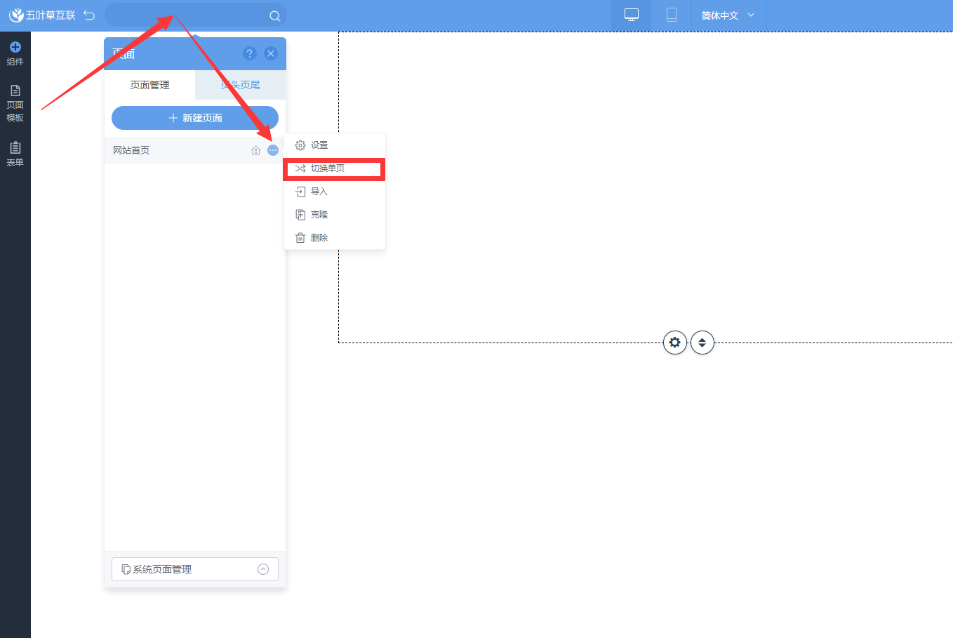 3.选择好模板就成功了,接下来进入设计页面,就可以设计属于自己的网站。
