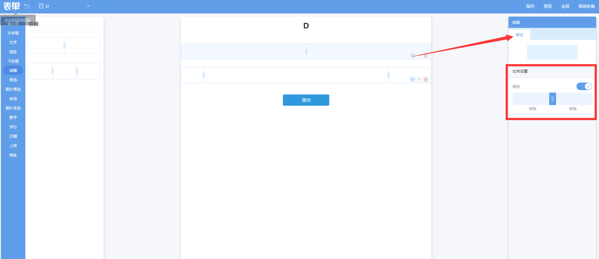2:设置容器分栏比例