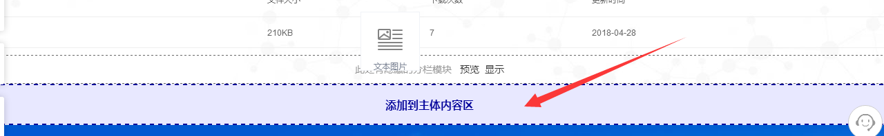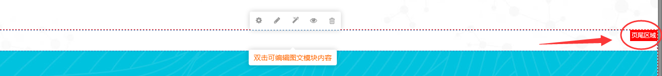 页尾区:鼠标拖动模块到底部区会显示红色提示区域,或已添加的模块鼠标移到右侧会看到在哪个区域
