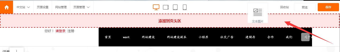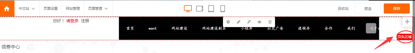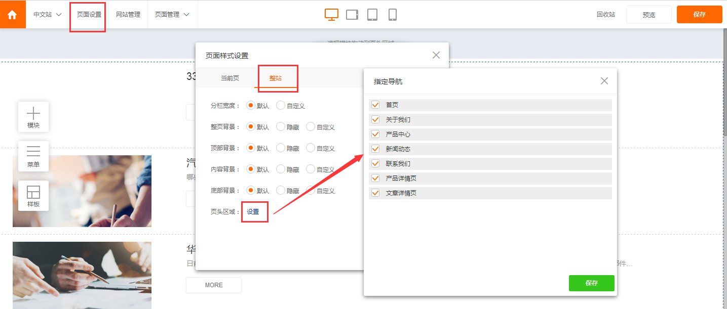 路径:编辑页面——页面设置——整站——页头区域—设置