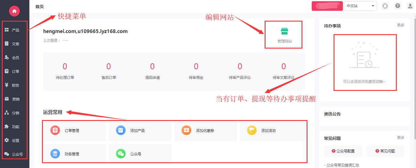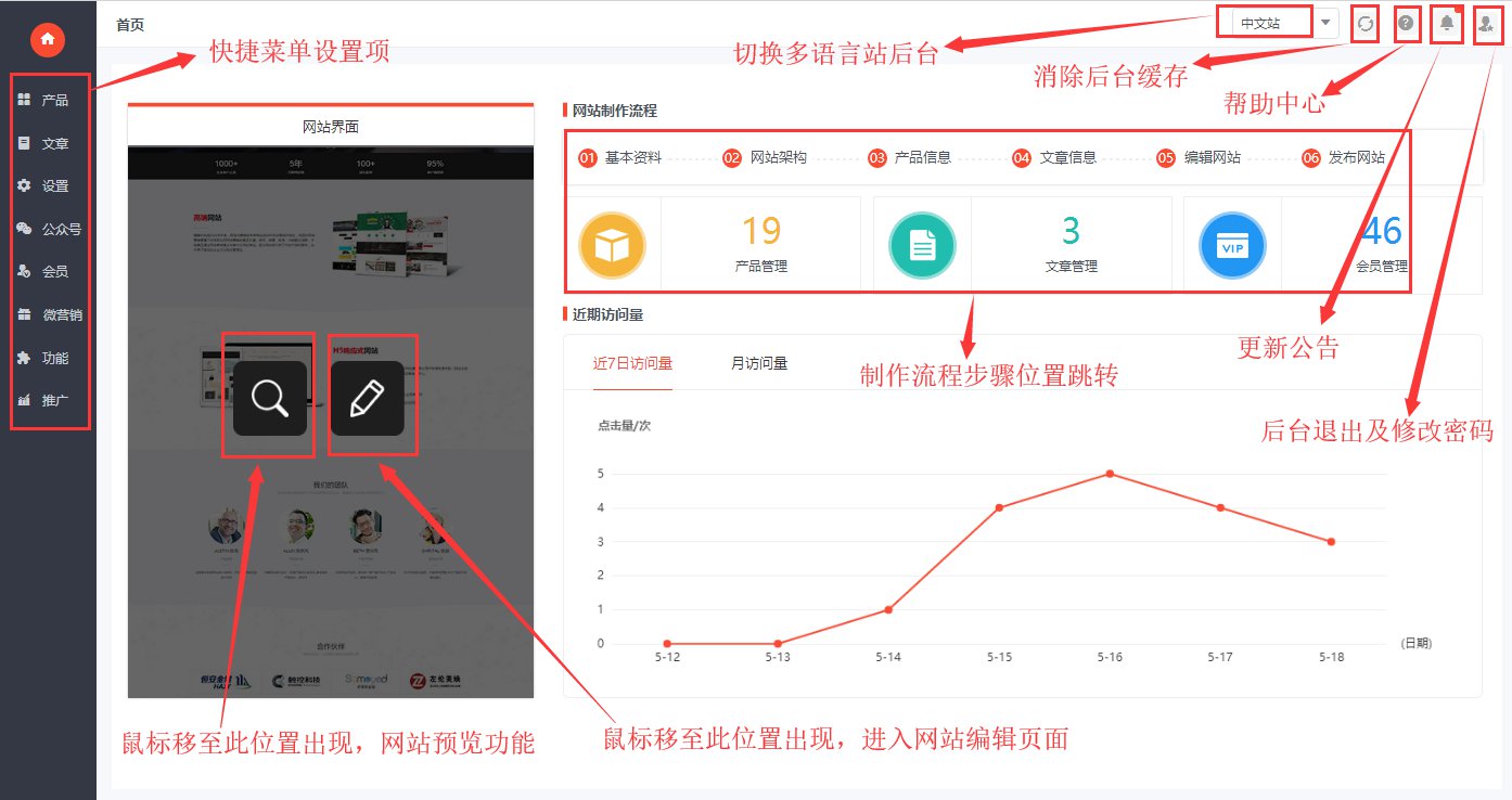 建站后台跟移动电商后台样式有点不一样,但功能位置雷同