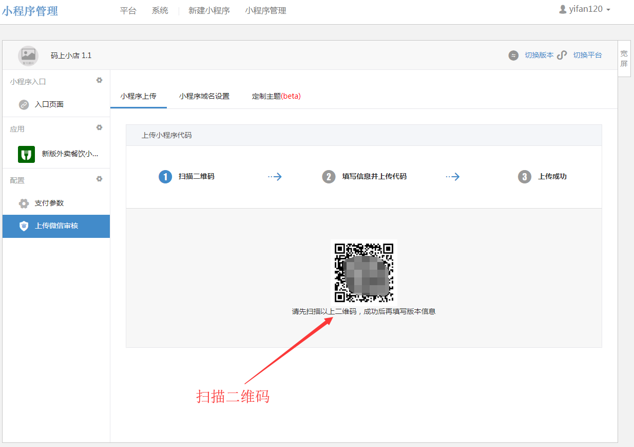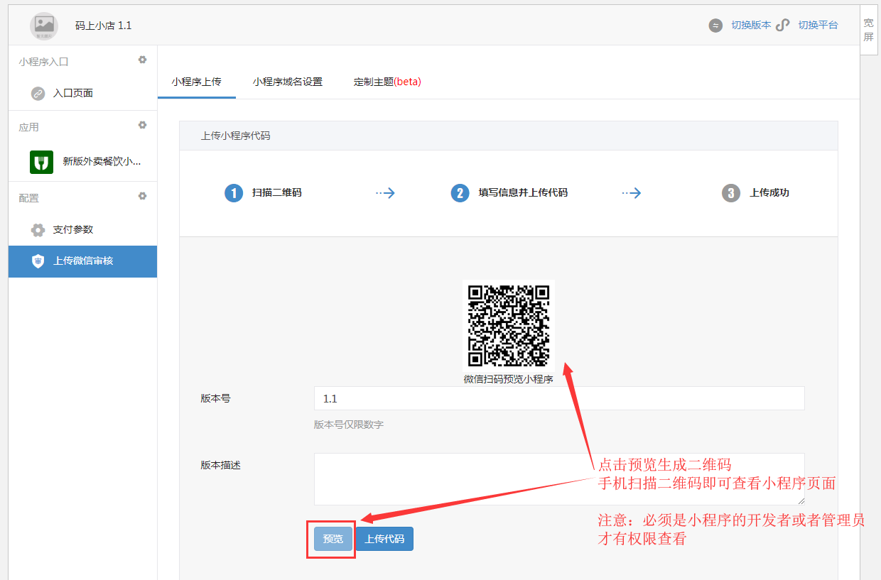 注意:扫描者必须是小程序的管理员