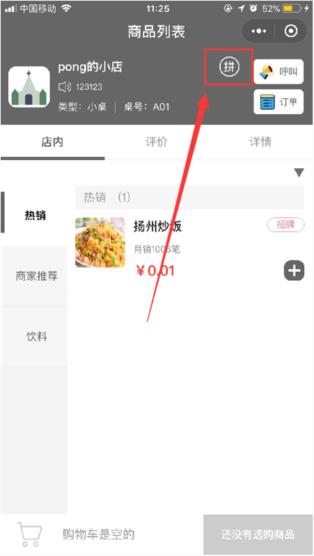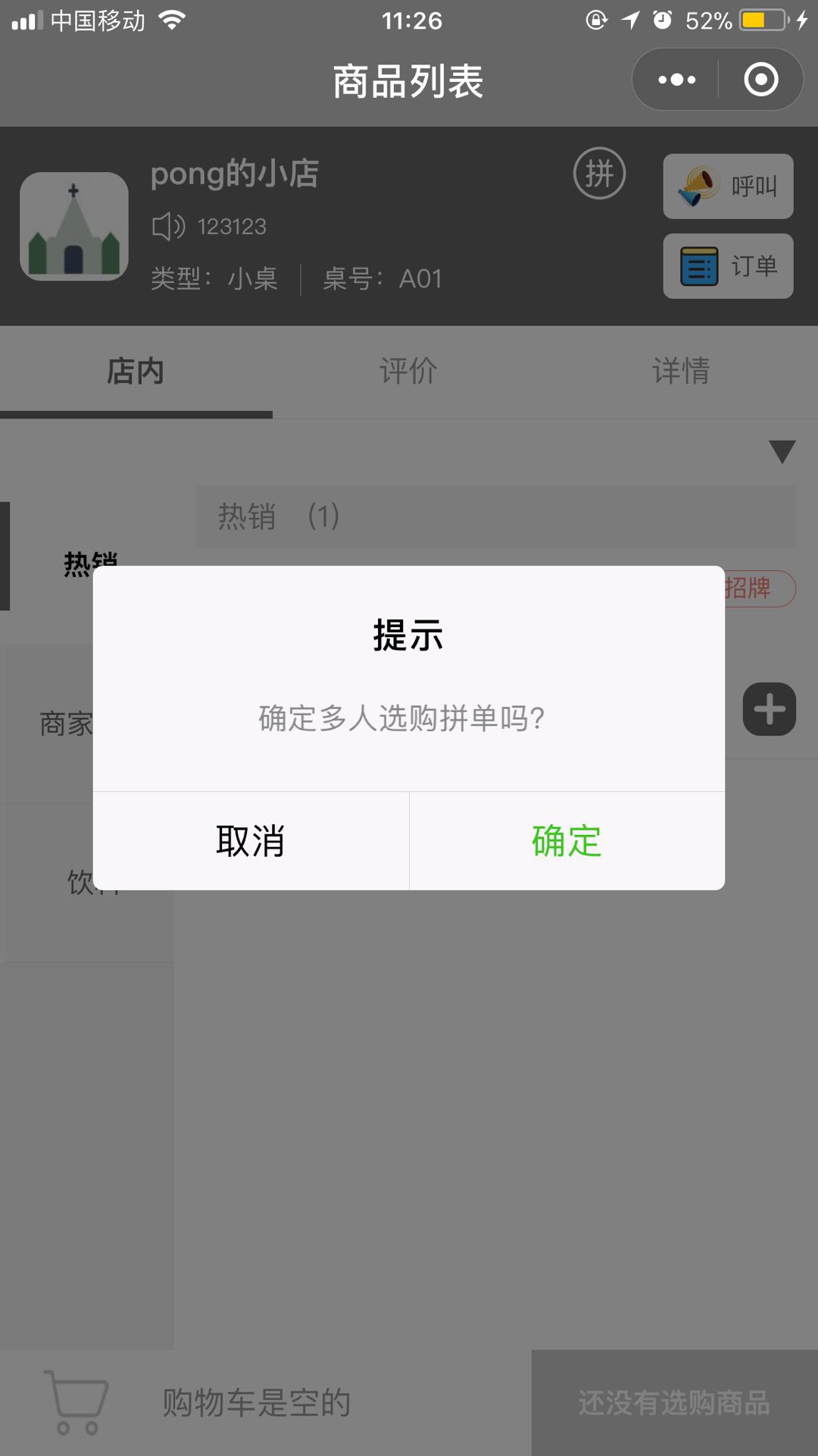 步、扫描餐桌二维码,进入点菜页面,发起多人点餐