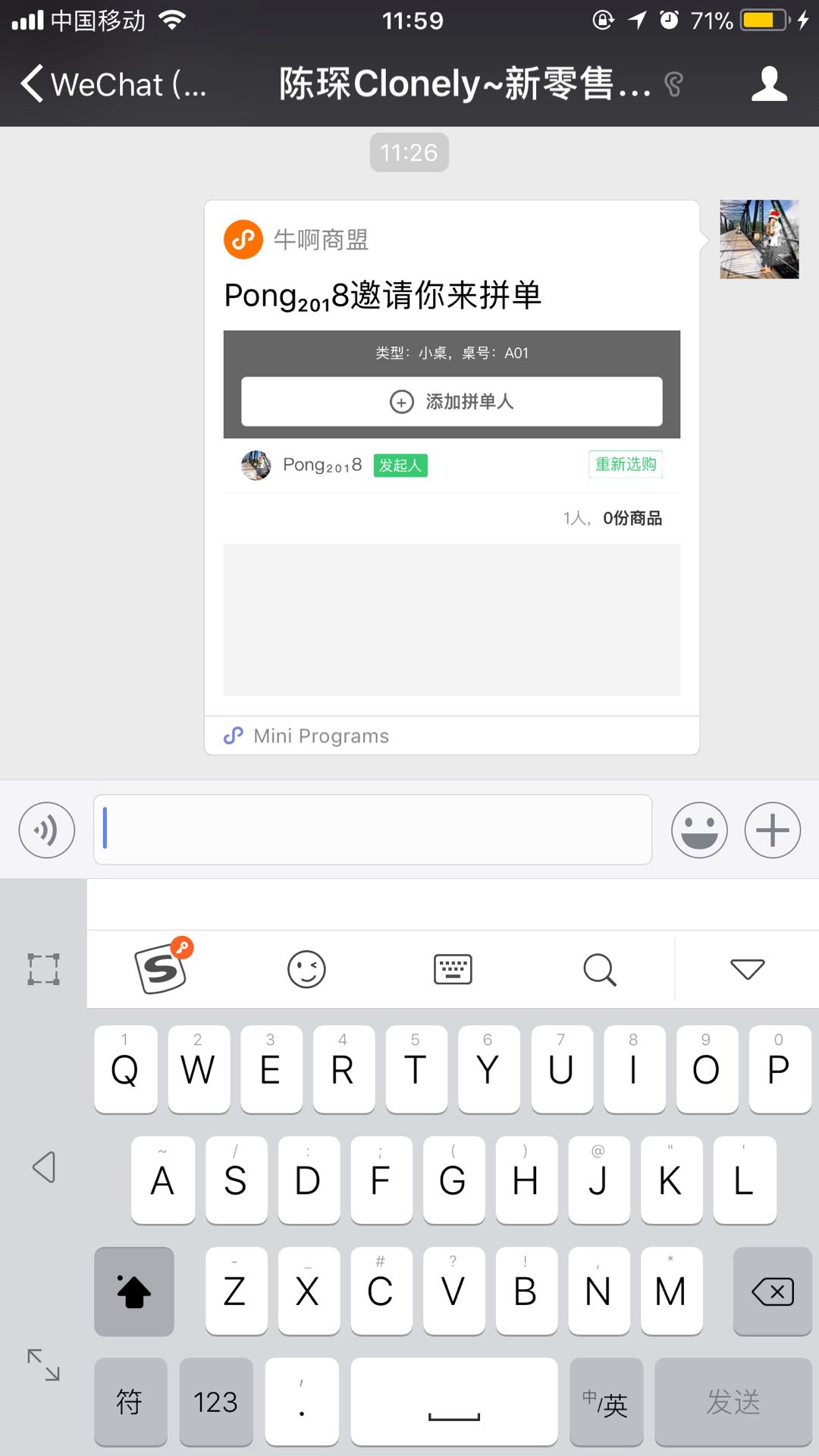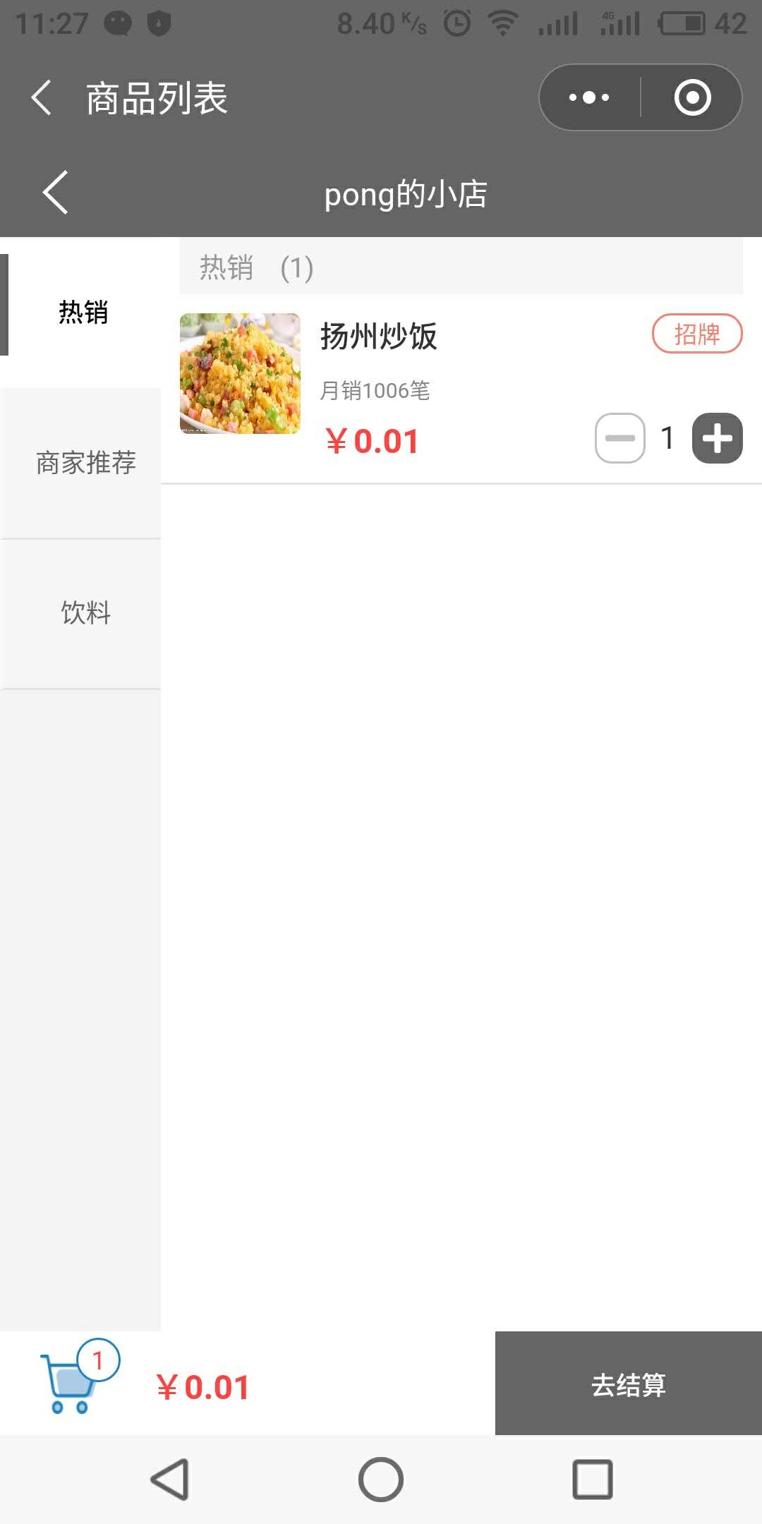 第二步、被邀请参与点餐的人,选择餐品后,点击结算提交到拼单页面