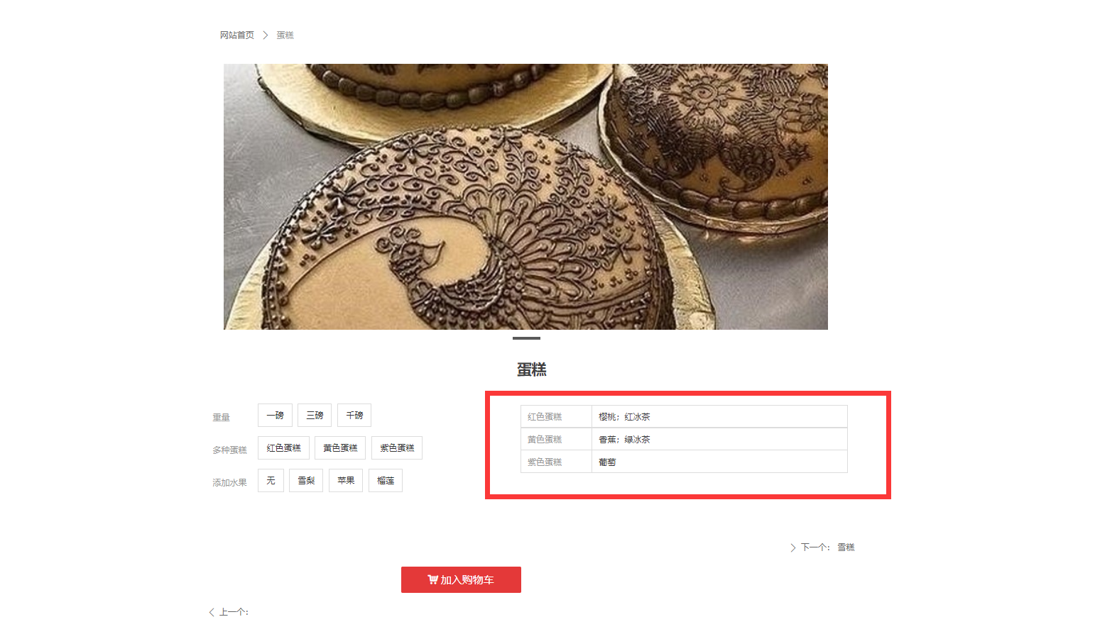 ②产品具体参数设置好后,选择想展示出来的参数就OK,如上图不想展示食用紫色素就不添加上去,下图终展示效果。