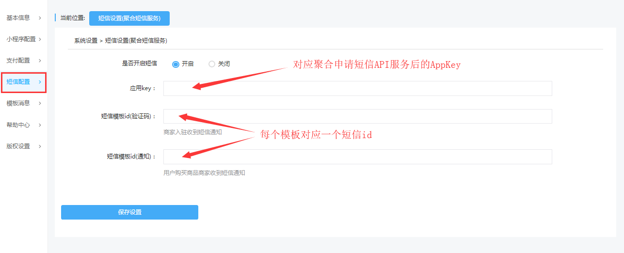 获取的AppKey,填写至系统后台