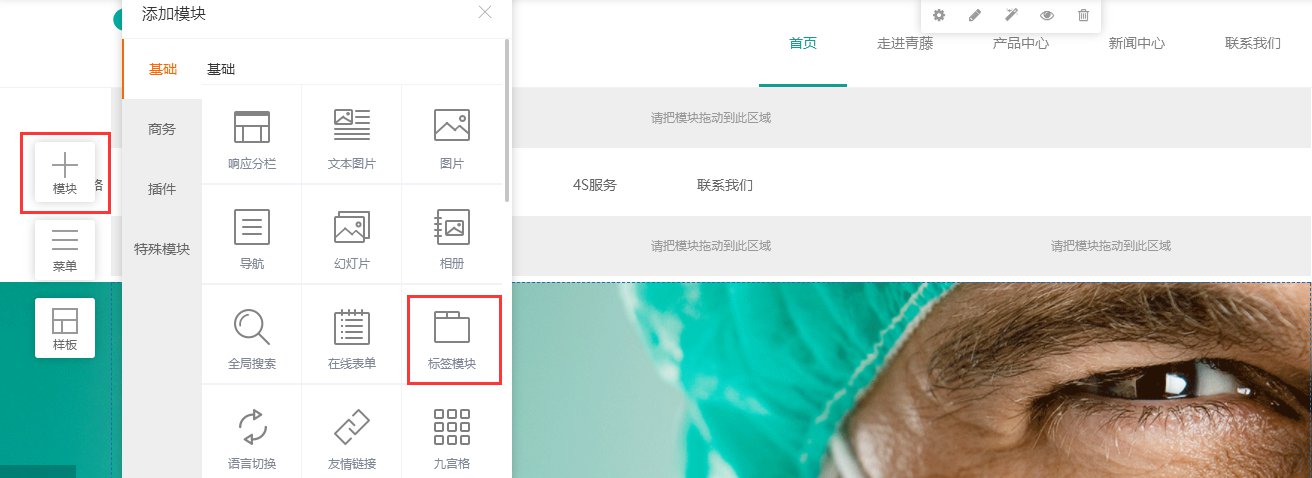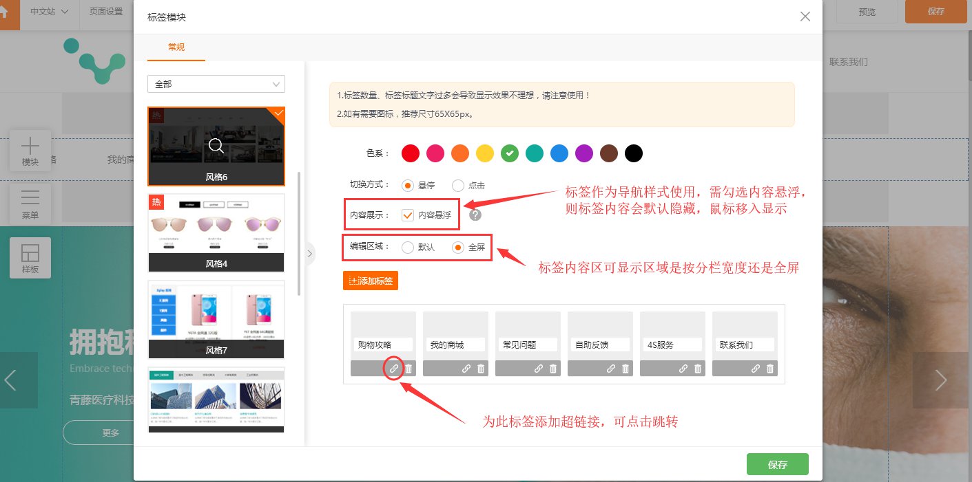 二、添加标签模块(选择风格6,风格3以及图标标签这三种样式)