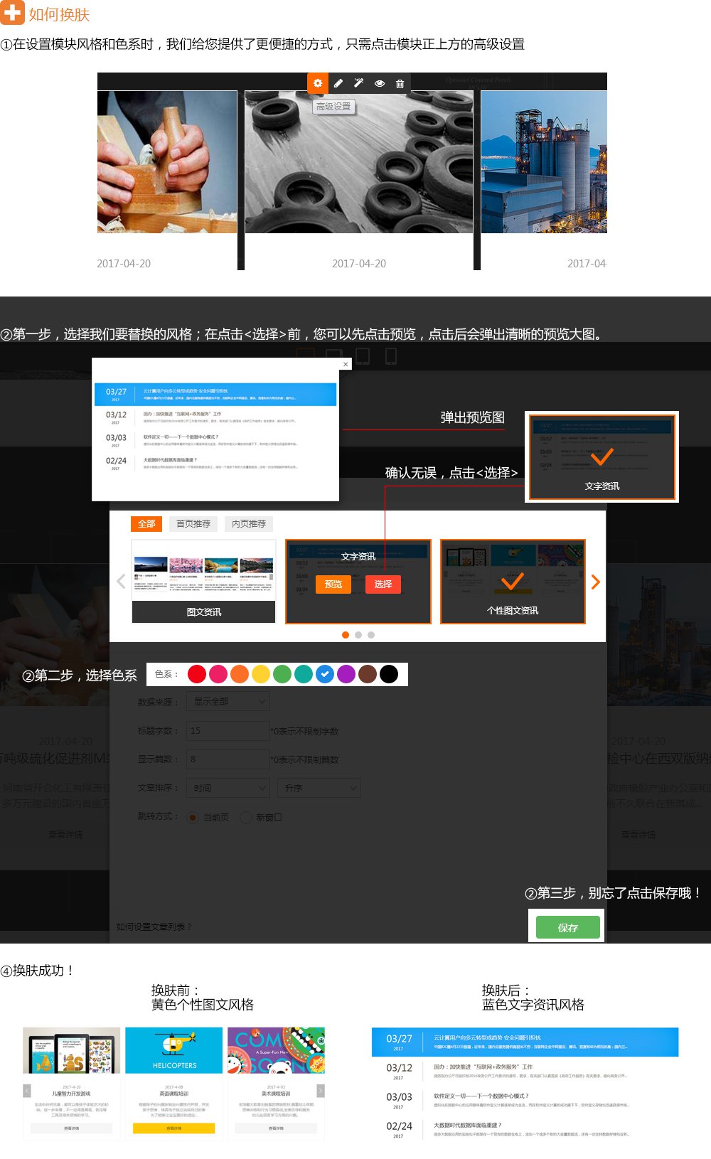 1.模块设置:进入该模块通用设置(快速换肤/样式)