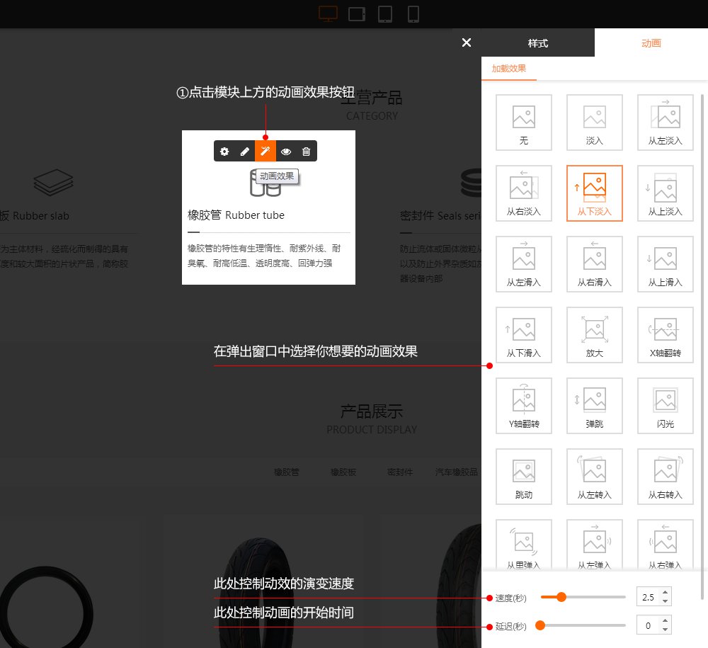 模块通用功能设置(模块设置、样式编辑、动画、显示隐藏)