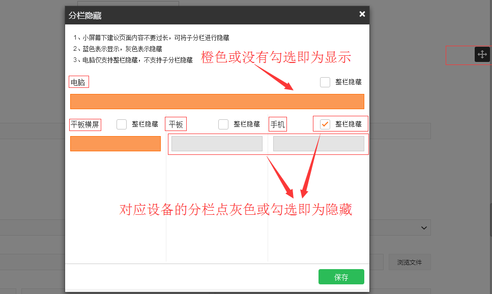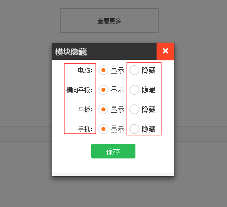 4.显示隐藏:模块的隐藏(主要用于H5响应站PC站点内容较到,响应到手机站效果不佳,可通过隐藏模块实现精简等作用)