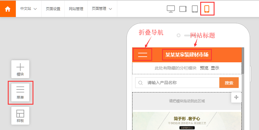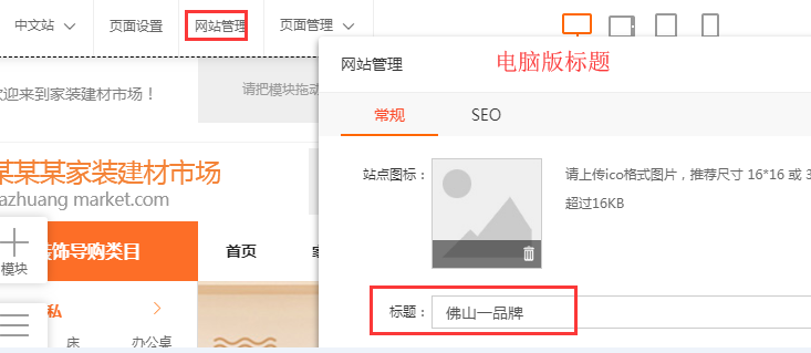1)电脑版在编辑页面顶部“网站管理”中修改:(如下图)