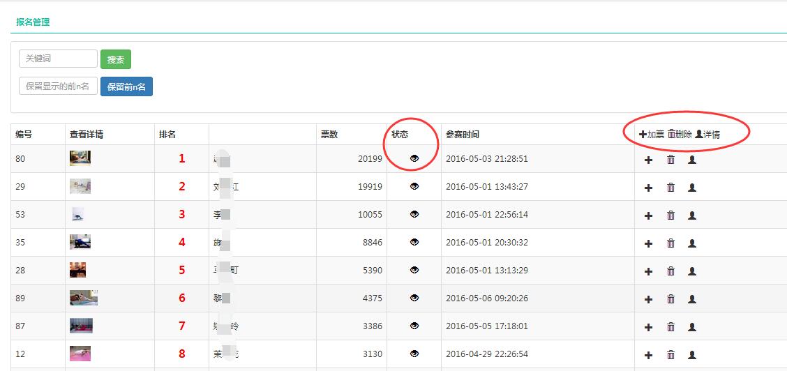 状态:可设置该报名者显示或隐藏