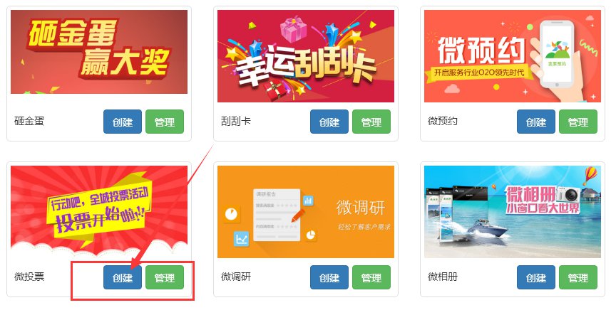 1.登录系统后台——微营销——微投票——创建