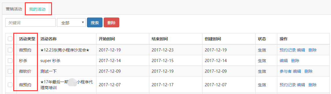 我的活动,就是指商城管理员自己创建的活动,不管活动是否生效,只要是创建的活动,都会在“我的活动”列表里面记录。商城可以统计每个季度/每年创建了多少活动,活动效果如何。