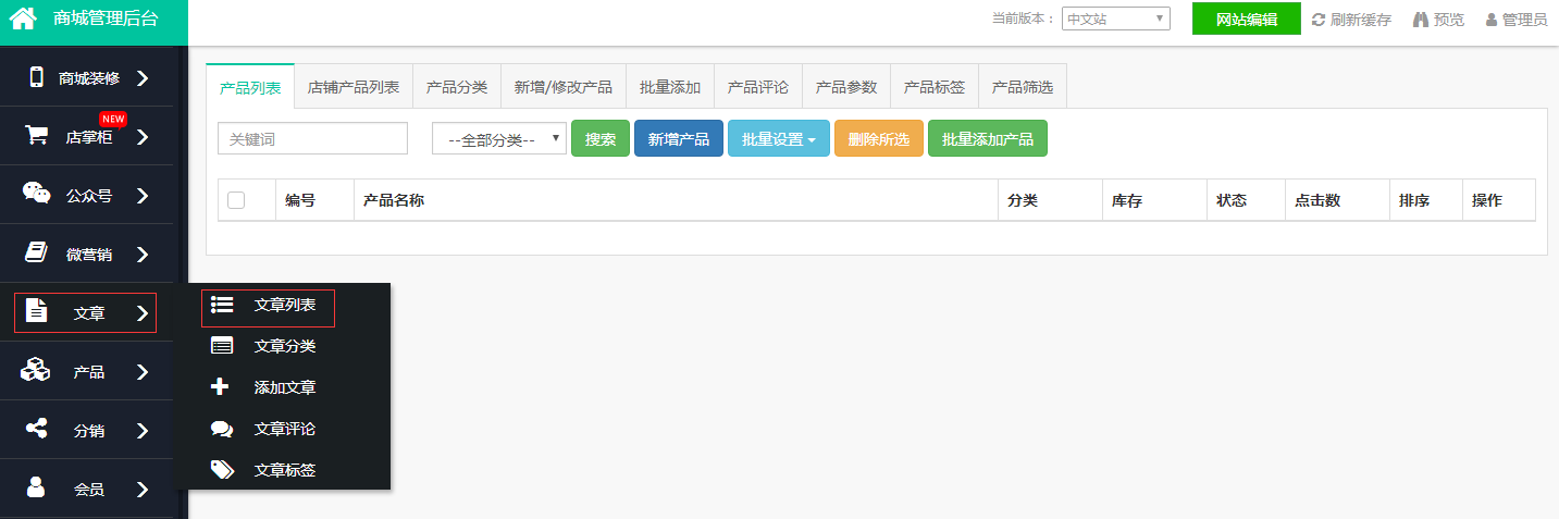 登录网站后台——文章——文章列表