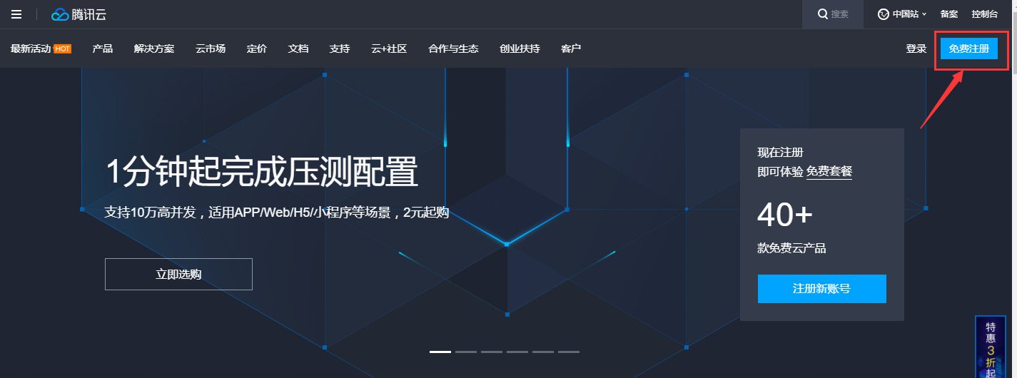 1.进入腾讯云主页 https://cloud.tencent.com/ 按照提示申请注册