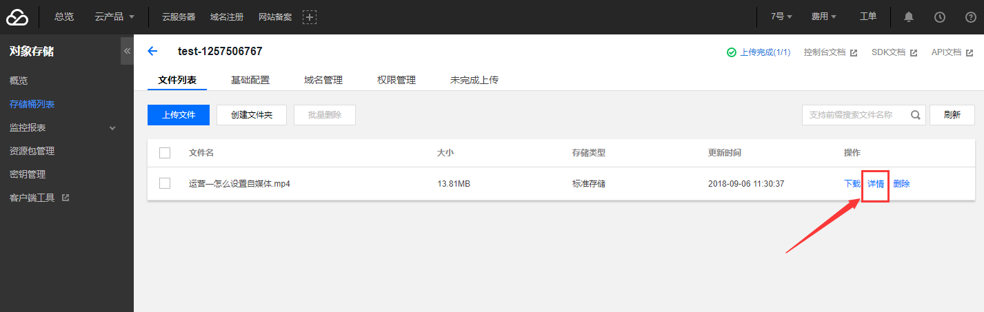 7.上传成功后,点击对应的视频详情,复制文件链接。