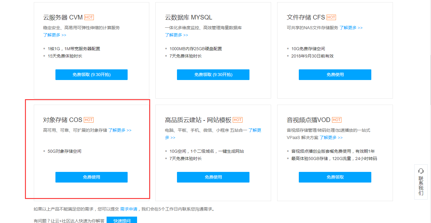 3.选择对象存储COS——免费使用