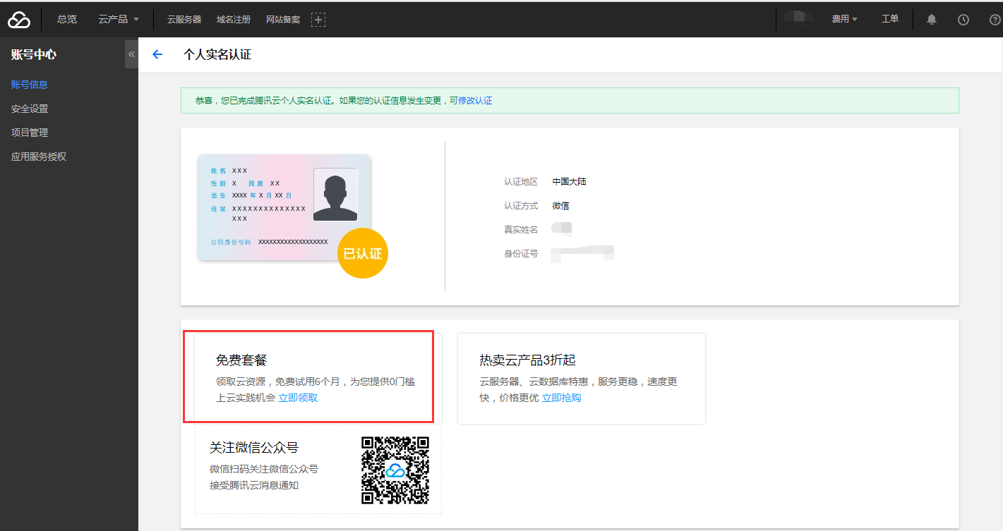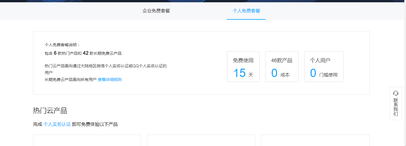 2.注册成功后需实名认证,现阶段有免费产品测试使用,点免费套餐