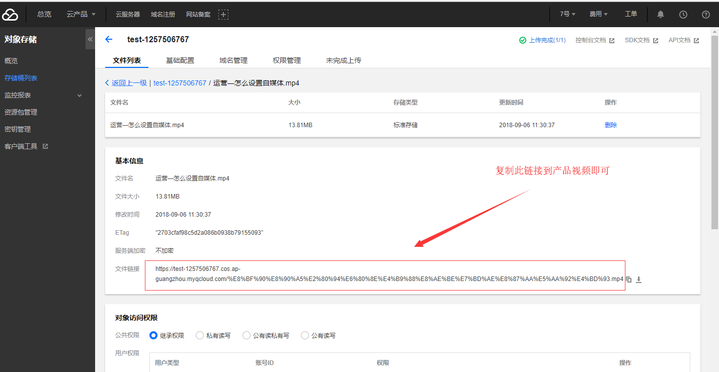 注:视频格式必须是mp4后缀,需要把视频上传到第三方空间(例如:阿里云、腾讯云等空间)再引入我司系统,下面以腾讯云产品为例,其它服务商设置可咨询对应客服