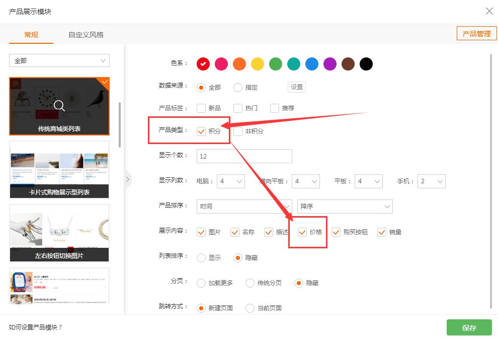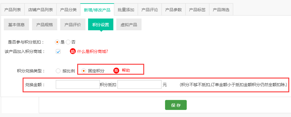 1.操作路径:登录系统后台——添加产品——积分设置——加入积分商城——固定积分